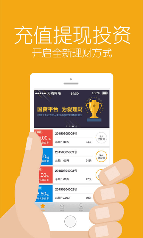 民贷天下理财安卓按版是一款简单易用、功能实用的手机理财软件,该软件不仅投资门槛低,收益高,除此之外能随存随取,无需手续费,是您理财投资的佳选择工具。
