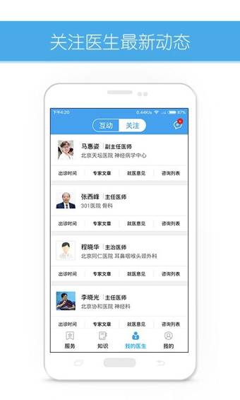 好大夫在线安卓版是一款专业的手机医疗服务软件,这里有多名优质的医生为您在线解答,还有海量的患有为您共同分享就医经验,除此之外还为您提供多种问诊方式。