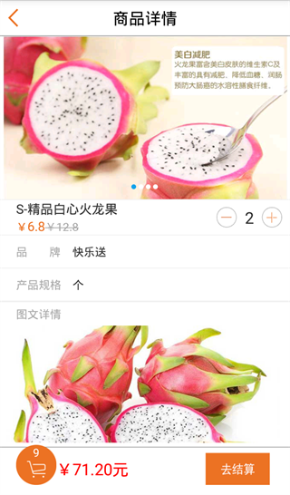 快乐送是一款生鲜配送手机应用,这里汇聚各类新鲜的水果,蔬菜,肉类,水产及营养美食套餐,您随时可以根据自己的需要和爱好进行选择和下单,我们的工作人员将为您提供便捷的送货上门服务。快乐送每天10点还有显示秒杀活动等着你哦,快来下载参与吧!