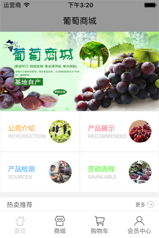 葡萄商城死一家专门为爱吃葡萄的用户打造的手机购物软件,这里拥有基地资产的鲜美葡萄,种类繁多,新鲜美味,价格实惠,用户可以根据自己的需要进行选择。同时,您还可以在这里观看我们的劳动流程,进行专业的产品检测呢,安全,健康,绿色,可以放心购买!