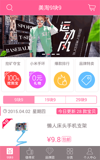 美淘9块9是一款专业的手机9.9商品导购软件,这里汇聚了海量9.9,19.9,29.9商品等你拿,比团购还优惠。每天精选百余家限时特卖品牌,全场商品低至1折包邮,所有商品保质保量,省钱从下载开始!