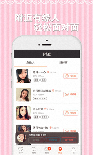 约爱交友安卓版是一款非常不错的手机聊天交友软件,它能根据你的情况为你智能匹配适合你的异性朋友,还能随时随地的和你感兴趣的异性朋友进行私聊,还能通过它进行线下活动。