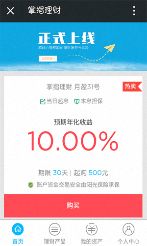 掌指理财安卓版是一款非常强大的手机理财软件,它能为您提供多种不同类型的理财产品,还能为您显示详细的产品信息,它还能为您提供详细的投资明细,让你及时的了解你的投资情况。
