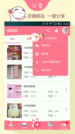 喵喵微店app是一款非常实用的安卓手机开店软件。开店完全免费,你只需做简单的注册就能够拥有属于你自己的微店啦!软件支持微信、支付宝、网银支付,安全快捷。第二天自动提现,保证你资金的流动性,想要开微店朋友不要错过哦
