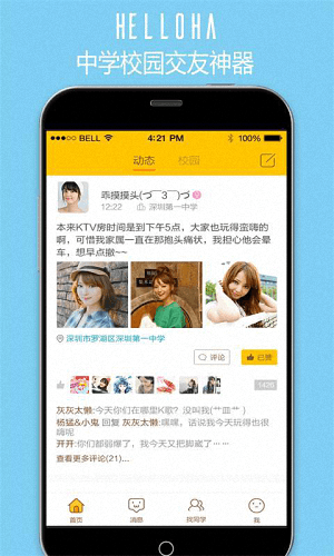 HelloHa安卓版是一款专为大学生提供的手机校园社交软件,你能通过它随时随地的查看好友的动态信息,还能为您提供贴心的提醒功能,让你不再错过任何一个消息。
