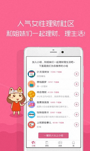 她理财安卓版是一款超级好用的手机女性理财社区,在这里,你能快速地找到志同道合的好友,还能为您提供丰富的理财知识供你参考,而且还能实时的好友分享理财经验,除此之外还能为你提供真实的理财故事。