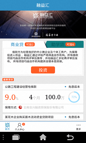 融益汇安卓版是一款十分不错的手机理财软件,这里拥有多种高收益的理财产品供你选择,还有严格的安全管理体系,保障您的账户安全,同时还能实时的查看你的账户信息,每天收益看得见。
