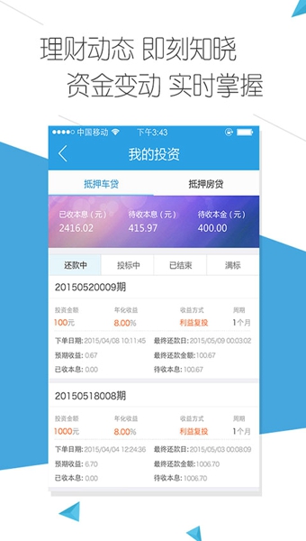 云钱袋安卓版是一款专业的手机理财软件,该软件拥有投资提醒、理财产品计算器、多重保障、账单明细、隐私设置等功能,是您理财投资的好帮手。