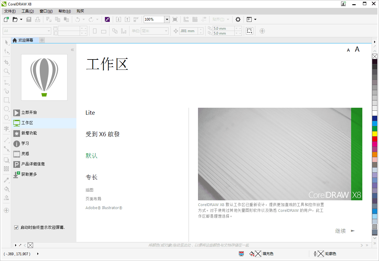 CorelDRAW X8 64位是一款功能强大的矢量绘图软件,软件使用于64位的电脑。软件的菜单栏包括文件、编辑、视图、布局、对象、效果、位图、文本、表格、工具等多个菜单,您可以根据绘制需要,将要用到的工具栏调出来使用。