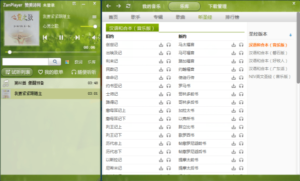赞美诗播放器(zanplayer)是一款优秀的音频播放器,主要用来播放赞美诗歌和圣经等,拥由自主研发的自主研发的全新音频引擎,ffmpeg解码,支持mp3/mp3pro、aac/aac+、m4a/mp4、wma、ape、mpc、ogg、wave、cd、flac、rm、tta、aiff、au等音频格式以及多种mod和midi音乐。