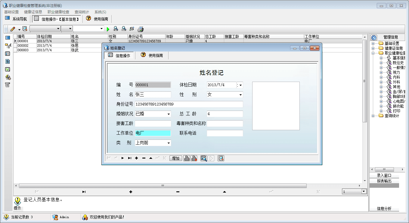 宏达职业健康检查管理系统是一款非常好用的健康检查管理软件,该软件能够帮助用户将健康检查的信息进行有效管理,界面设计合理,便于用户操作,适用于健康管理人员!