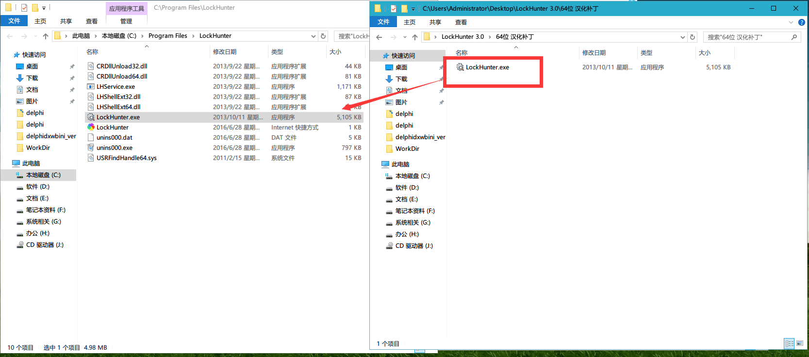 LockHunter(文件解锁工具)汉化版是一款系统辅助工具,软件功能比较强大,能快速的查找出指定文件或者文件夹的程序占用情况,一键式结束进程占用,帮助用户轻松的删除顽固垃圾以及恶意程序。