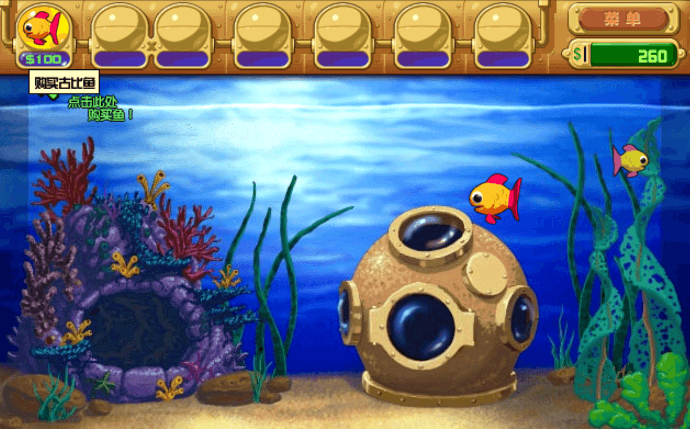 怪怪水族馆2中文版是一款简单好玩的休闲单机游戏,玩家的目标是通过养鱼来让神奇的蛋孵出宠物。软件共有开始冒险、限时、挑战、虚拟鱼缸四种游戏模式,你可以自由选择,另外通过软件下方的高分排行按钮,你可以查看得分情况。