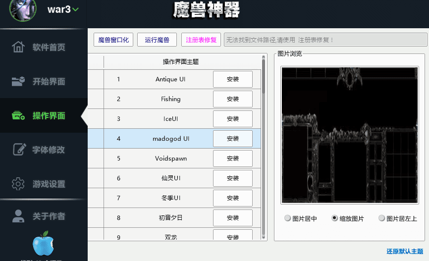 魔兽神器是一款专门为游戏魔兽世界打造的辅助工具,软件功能十分丰富。你可以使用这款辅助工具,对游戏魔兽世界的开始界面、操作界面、字体、游戏分辨率等项目进行修改。软件给予你极大的自由,让你可以随心所欲的调整游戏,使其看起来更加美观。