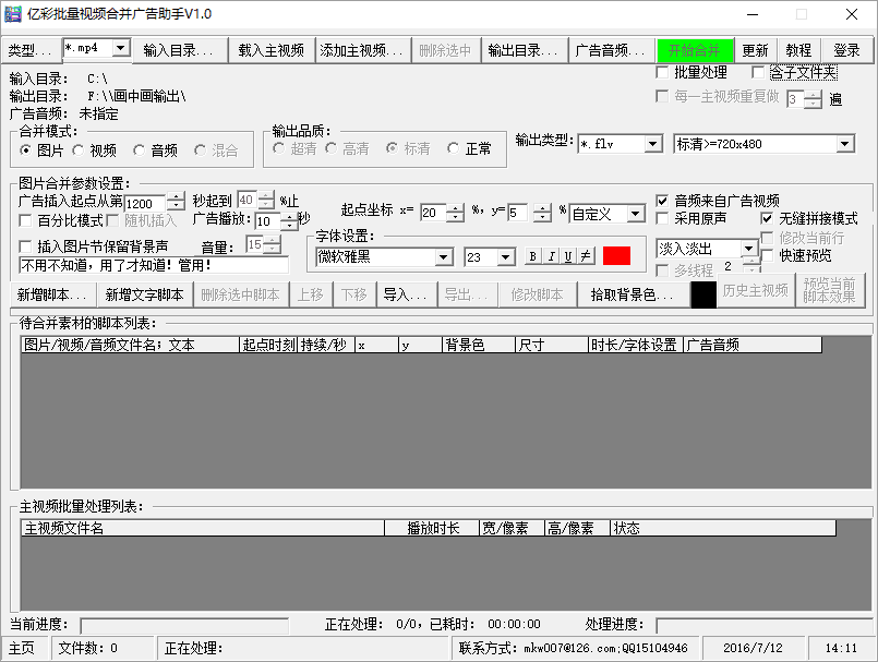 亿彩批量视频合并广告助手是一款功能全面丰富的视频编辑和管理工具,能够帮助用户将视频文件合并起来,支持批量合并,方便快捷同时软件还支持音频、图片、文字等多种元素的合并,特别适合用来进行视频推广营销。