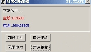红色警戒2共和国之辉作弊器是一款专门为游戏红色警戒2共和国之辉打造的游戏辅助工具,能够使你的游戏增加十万金钱,加速建造,获得无限电力等。软件界面简洁直观,使用方便,需要注意的是打开作弊器之前需要启动游戏。