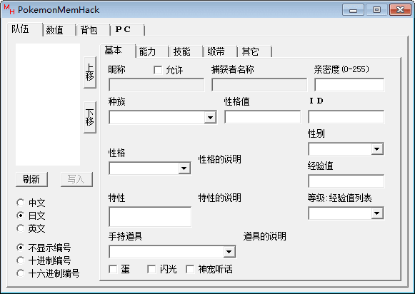 PokemonMemHack(口袋妖怪修改器)是一款专门针对热门游戏口袋妖怪而研发的游戏修改工具,能够帮助玩家对Pokemon游戏属性值进行修改,包括队伍、PC值、背包以及数值等四大属性的修改,例如道具、经验修改等等。