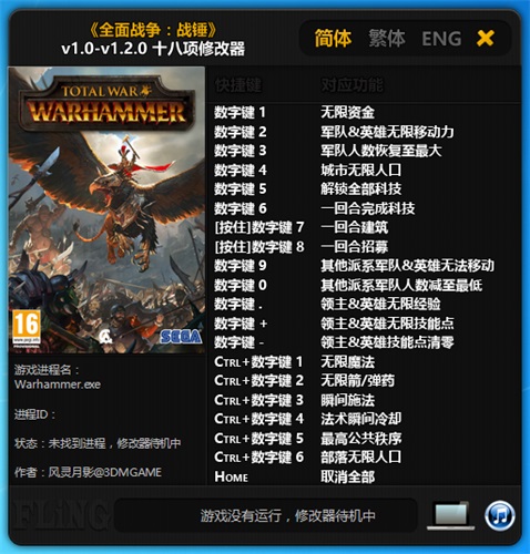 全面战争战锤修改器是由风灵月影制作的修改器工具,你可以通过它任意修改游戏参数,包括金钱、人口、行动力等等,非常方便,有需要的话就快来下载吧!