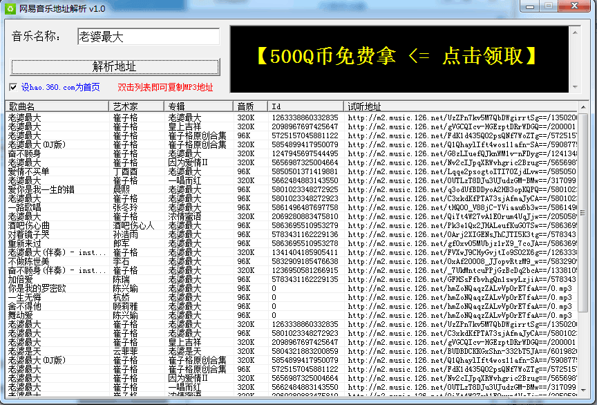 网易音乐地址解析是一款专门为热爱音乐的用户打造的应用软件,致力于为用户提供新全的网易音乐地址解析。如果您听到某一首新歌却不知道在哪里进行下载,那就使用网易音乐地址解析啊,只需要输入音乐名称就可以解析出一系列的下载地址了,您可以根据自己的喜好进行选择和下载