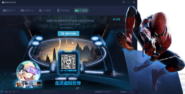 蓝光VR大师PC版客户端,是一款丰富的VR资源聚合平台软件,语言为中文,要求系统为Android 3.0.x以上。vr播放器(蓝光VR大师)是一款全球领先的VR虚拟现实应用视频管理程序,配合蓝光VR大师APP和PC端使用,为用户提供具有沉浸感的虚拟现实体验:观看3D,4D电影、全景视频与图片,体验沉浸式VR游戏。支持所有本地视频转换成VR视频观看。