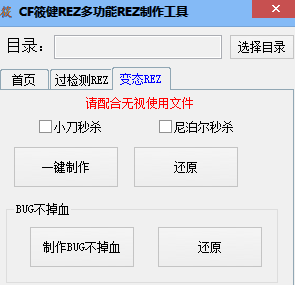 CF多功能REZ制作工具是一款专门为游戏穿越火线设计的辅助工具,软件功能十分丰富,具有过检测REZ和变态REZ两个菜单,你可以一键制作,选用小刀秒杀,制作bug不掉血等。本工具界面简洁直观,使用非常方便。