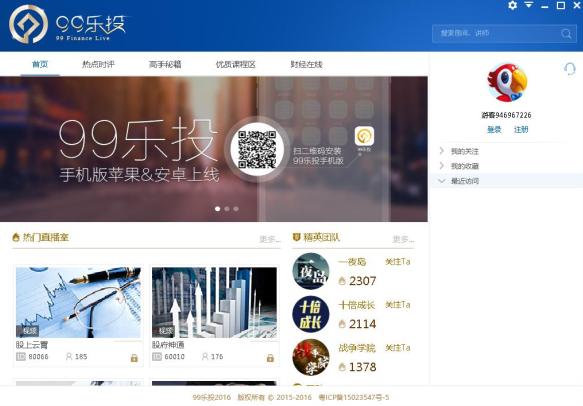 99乐投直播平台是由广州玖拾玖度信息科技有限公司开发的一款专门针对于投资理财相关行业的视频直播平台,在99乐投直播平台的所有视频直播都是讲解的于股票投资相关的资讯,非常适合想要投资的用户使用。