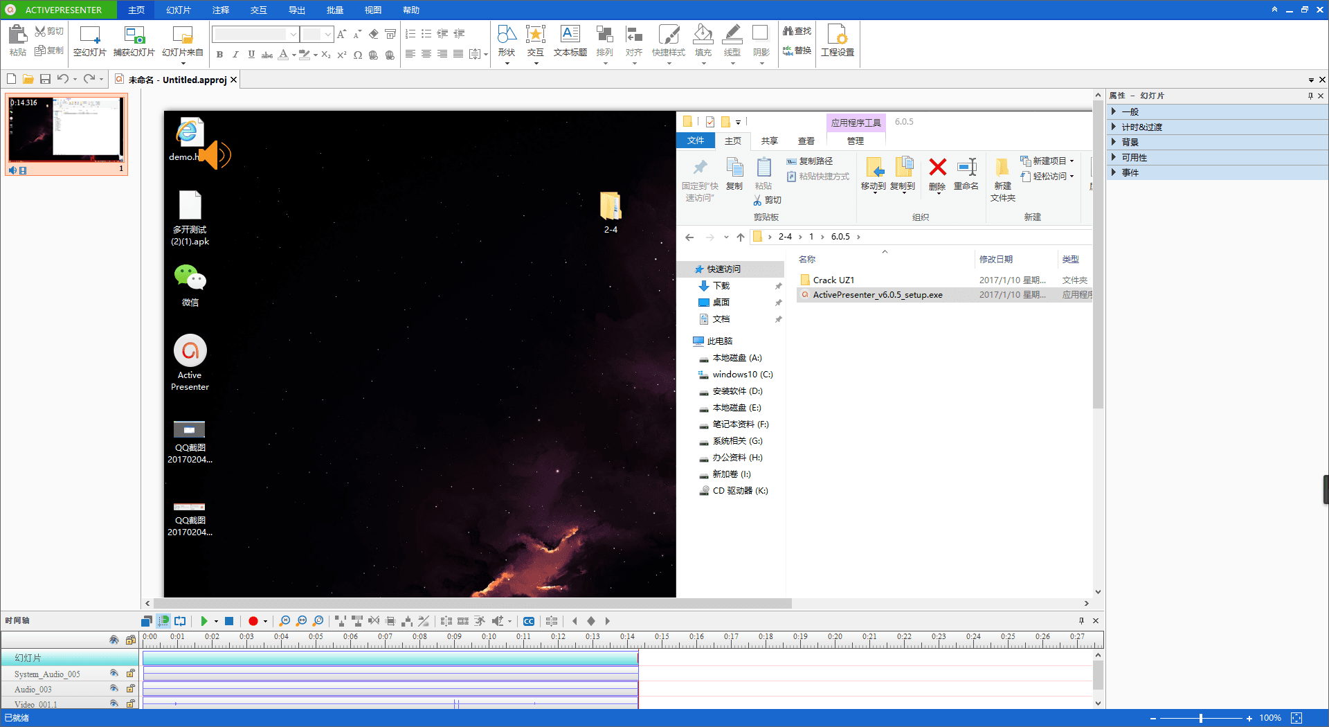 ActivePresenter Professional Edition是一款屏幕录制工具,能够让用户轻松的录制自己的电脑操作,从而生成视频教程,与一般的视频录制工具不同,该软件自带编辑器功能,用户可以自由的对自己录制的视频进行编辑操作。