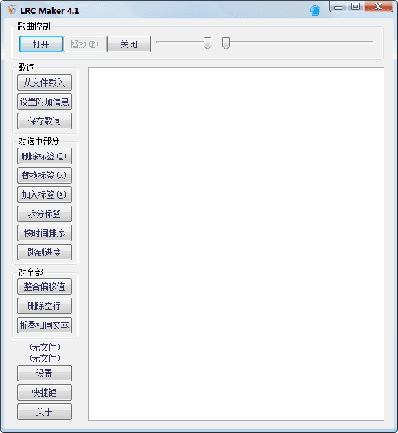 lrc maker(lrc歌词制作软件)是一款可以制作同步歌词lrc的软件,从文件载入歌词后进行编辑,对选中的部分可以删除标签、替换标签、加入标签、拆分标签,还可以按时间排序,选择进度,还可以对全部的歌词调整整合偏离值,是一款很棒的歌词编辑软件。
