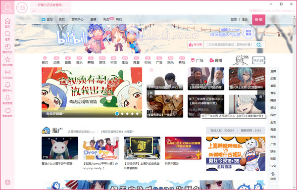 哔哩哔哩动画将哔哩哔哩Pc是一款集合了电脑版和手机版功能的视频播放器软件,B站是广受年轻人喜爱的一个视频播放平台,各种有趣的弹幕,二次元动漫、各种剪辑视频非常丰富,也满足了大家对于B站的观看需求。